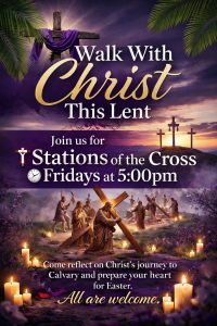 Friday’s Stations of the Cross + Add to Google Calendar + iCal / Outlook export 00 days 00 hours 00 minutes 00 seconds Date Feb 20 2026 - Mar 27 2026 Time 5:00 pm - 6:00 pm Category featured Share this event